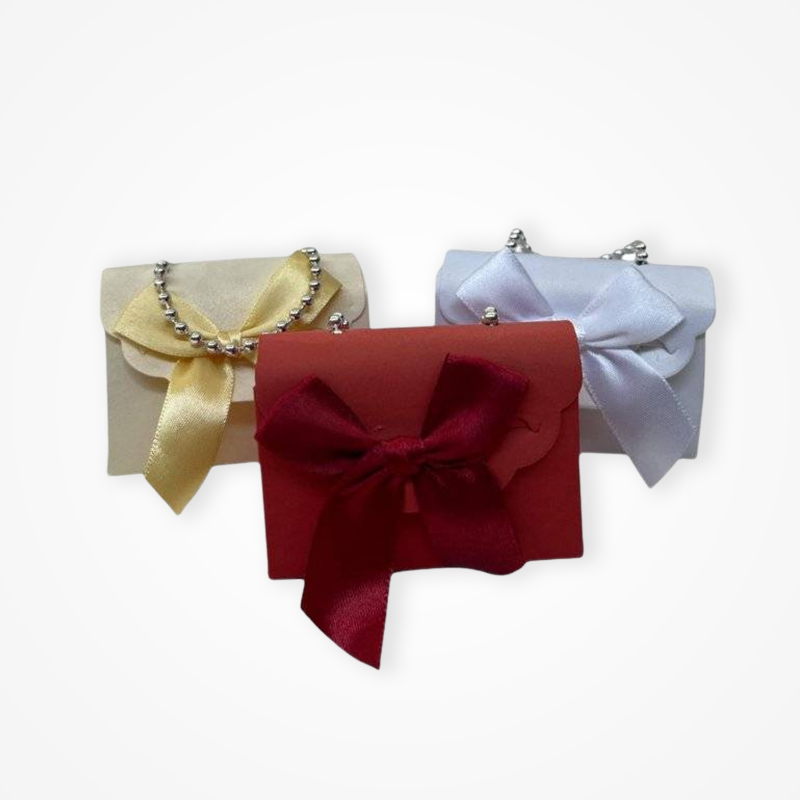 Cutie tip poșetă cu fundă satinată și mâner decorativ