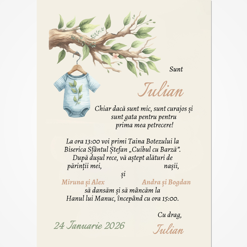 Invitație digitală pentru botez „O nouă creangă în arborele genealogic” LI-B007