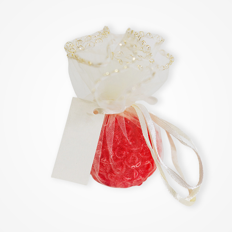 Ambalată elegant într-un săculeț delicat din tul crem sau auriu cu margine brodată cu fir auriu și legată cu panglică satinată, această mărturie aduce o notă de rafinament și romantism fiecărui invitat.